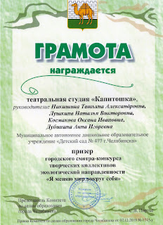 Мы получили Гран-при областного конкурса ''Театральная весна'', который проходил в ДК им. П.П.Бажова в г.Копейске. Спасибо родителям, педагогам, артистам, зрителям, всем, кто любит театр.